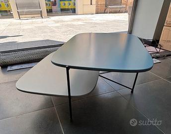 Tavolino Saba Italia, laccato opaco grigio e azzurro, struttura in tubolare nero. Usato, col qualche leggero graffio.