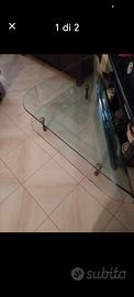 Tavolino sala FIAM in vetro forma triangolare 2 ripiani.