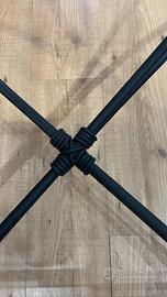 Splendido tavolino fornasetti tipica manufatto fine snni 80 realizzato con foulard di seta inglobato in due lastre di metacrilato. Con marchio fornasetti Fornito con la sua base in ferro forgiato e trattata con polveri metalliche il tutto perfetto ed originale Misura 87/89/38 ca
