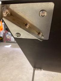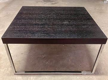 Tavolino moderno con un design minimalista caratterizzato da un piano quadrato con finitura in legno scuro (spesso identificato come nero frassino, rovere brown o wengé) e una robusta base a slitta in acciaio cromato. Molto pesante e robusto ideale da mettere in un salotto. Dimensioni 90x90cm Altezza 40cm Buone condizioni. Non spedisco. Ritiro a mano.