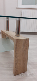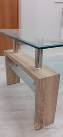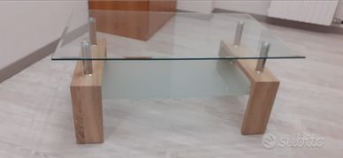 Tavolino salotto con due ripiani vetro: cristallo quello superiore e satinato quello inferiore.