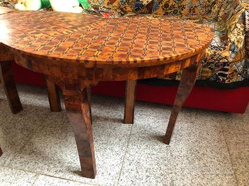 Tavolino a spicchi salotto etnico in legno con intarsi.