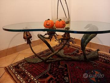 tavolino salotto fatto a mano da artigiano in ferro battuto con piano in vetro vendo per cambio arredamento