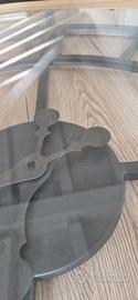 Il tavolino ha 4 ruote, di cui due si possono bloccare, orologio perfettamente funzionante in metallo con sopra il vetro.