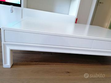 Tavolino Syringa della linea contemporanea melograno di Le fablier. Bianco. Struttura in frassino, con 4 cassetti laterali apribili e molto ampi.