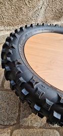 originale tavolino da salotto con pneumatico moto da enduro. finitura in legno di rovere con gambe legno massello. diametro 70 cm altezza 38cm