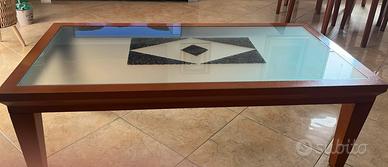 Vendo elegante tavolino da salotto con struttura in legno massiccio e piano in vetro.