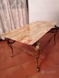 Tavolino salotto anni 60 base ottone piano in onice ottime condizioni. Dimensioni 45x90 h45 cm.