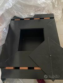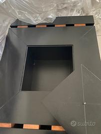 Tavolino per salotto da mettere davanti al divano, ad esempio, tutto in legno massiccio tinto nero e dettagli noce con foro Centrale per mettere riviste o piante o quant’altro tenuto benissimo come nuovo misura 152 × 80