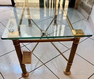 Tavolino da salotto in ottone bagno oro e ottone bronzato, con ripiano in cristallo molato della ditta Orsenigo di Cantù, modello Pompei. il tavolino ha altezza 50 cm e ripiano 60 cm per 120 cm e spessore del cristallo 1 cm. La ditta Orsenigo e' garante di materiali di primissima scelta, lavorati da mani esperte al fine di rendere un prodotto unico e durevole nel tempo. Il tavolino ha forma rettangolare ad unico ripiano. Il prodotto sarà fornito con certificato di garanzia. Si trova in ottimo stato. Per via della sua fragilità è previsto il ritiro da parte dell'acquirente.
