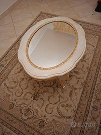vendo Tavolino salotto usato pari al nuovo come da foto stile barocco ovale in legno avorio con specchio e foglia oro