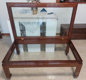 Vendo tavolino da salotto in noce massello con vetrinetta apribile e ruote, in ottimo stato e di ottima fattura (realizzato da un artigiano diversi anni fa). Le misure sono 120 x 70 x 44h