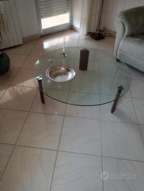 Ottimo tavolino tondo legno e cristallo. Diametro 112. RITIRO DA NUORO