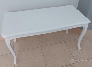 Tavolino da salotto in legno bianco stile shabby chic. Misure: 83 x 44 x 42 cm.