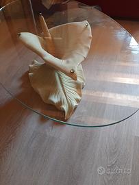 Tavolino salotto, calla in gesso con vetro appoggiato sopra. Altezza 40 cm, misure vetro 65x110 cm. No spedizione, consegna presso mio domicilio o zone limitrofe (da concordare).