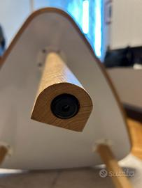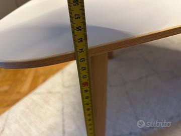 Tavolino triangolare larghezza 86 cm e altezza 58 cm. Gambe in legno e ripiano in legno laminato. Ottimo per sala. Ben tenuto e solido.