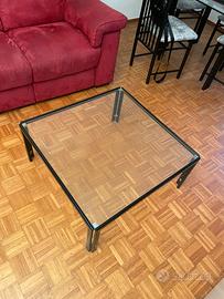 Tavolino di vetro con struttura di metallo nero 80 x 80cm, altezza 35cm