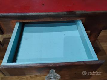 Causa trasloco vendo tavolino scrittoio di prima metà del 900. Superficie da restaurare o rimuovere e lucidare; scorrimento cassetti in perfetto stato. Non so che legno sia, ma è molto duro e leggero. Nessun foro di tarli. Condizioni di stabilità perfette. Misure: cm 101 x 56, h cm 80. Non effettuo spedizioni, ritirabile nella zona di Bologna. Oppure spedizione con corriere e ritiro gestito dall'acquirente.