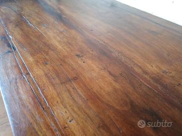 Tavolino Scrittoio direttorio, di fine '700 / inizio' 800, stile Luigi XVI in legno massello di noce, piano incorniciato, a 2 cassetti (superficie interna con laccatura bianco panna) con pomoli originali, gambe a spillo.