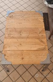 Vendo tavolino self made, ideale per zona giorno. Le gambe sono di alluminio e il piano è ricavato da un pallet. Causa cambio stile arredo metto in vendita questo tavolino fatto da sola con tanto amore che ho sempre usato davanti al divano. I segni che si vedono sul legno sono segni della sua vita precedente da pallet. Insieme al tavolino regalo anche la scatola di champagne che ho usato per contenere gli incensi.