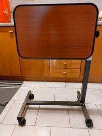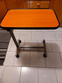 Tavolino servitore servi-pasto con piano d'appoggio in legno. Acquistato in negozio di sanitaria e mai usato. Altezza e inclinazione regolabili, ruote frenanti, adatto a letti medicali.