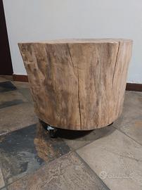 tavolino sgabello tronco con rotelle