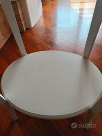 Elegante tavolino rotondo in legno, ideale come portalampade/telefono/ vasi o come complemento di arredo per il salotto. Il mobile è interamente pitturato a mano con tecnica legno gesso in una elegante tonalità bianco opaco.