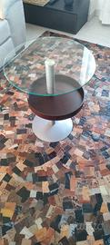 Tavolino da soggiorno, con struttura in metallo e piano in vetro temperato.