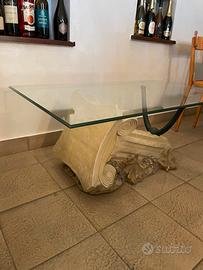 Tavolino di arredamento da soggiorno con struttura e vetro sovrastante