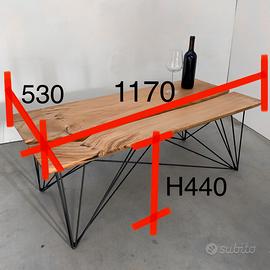 Tavolino soggiorno design handmade legno metallo