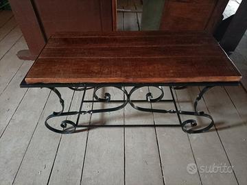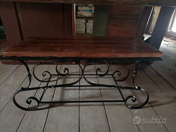 Vendo tavolino soggiorno in legno massello e ferro battuto