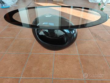 TAVOLINO SOGGIORNO OVALE VETRO NERO MODERNO