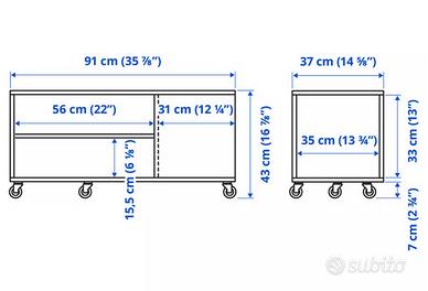 Tavolino da soggiorno con ruote. Colore bianco 91x37 cm