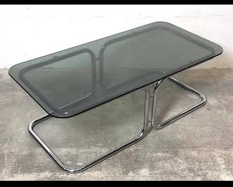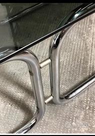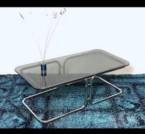 Tavolino di design in vetro e acciaio, periodo Space Age anni '70, prodotto in Italia. Larghezza: 106 cm Lunghezza: 53 cm Altezza: 38 cm Visibile a Roma. Possibile spedizione. 300 euro.