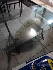 tavolino stile barocco vetro di cristallo marmo in travertino praticamente pari al nuovo