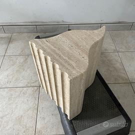Tavolino stile Carlo Scarpa vintage, design anni 60 70 in marmo travertino. Altezza 40 cm, lunghezza 34, larghezza 28. Molto moderno, una scultura che si abbina perfettamente ad altri oggetti come Flos Artemide e modernariato anni 60 70. Ideale per salotto studio o coffee table da divano. Non spedisco solo ritiro di persona