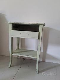 Tavolino in stile classico arte povera in vero legno, dipinto a mano in stile invecchiato verde salvia con frontale a ribalta, L. 60 p. 41 h. 80, adattabile in più ambienti, escluso trasporto