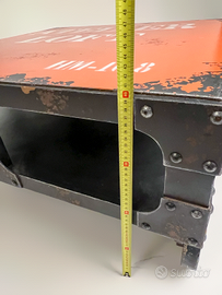 Vendo tavolino basso stile industrial/fabbrica, replica artigianale in legno, con finitura effetto metallo vissuto e ruote decorative.