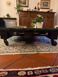 Tavolino in vetro, stile industriale, dimensioni 80 X 120 X 26 cm . Europallet verniciato di nero opaco con lastra di vetro su misura.