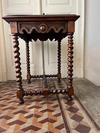 Tavolino in stile Luigi XIII / Neorinascimentale della seconda metà XIX secolo artiginale e in noce massello con gambe a tornitutura a spirale (a tortiglione).