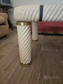 Tavolino da caffè Mid-Century 115x115 x 39 anni 1970 /1979 in porcellana bianca crema , ottone e piano in vetro a specchio color bronzo opera del designer Tommaso Barbi