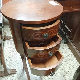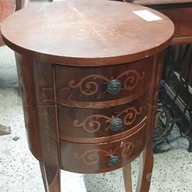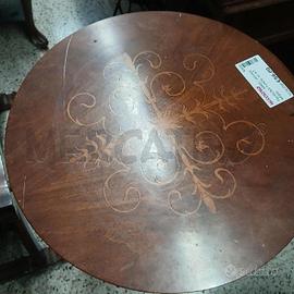 TAVOLINO TONDO 3C INTARSIO. CON SEGNI DI UTILIZZO E DEL TEMPO. DIAMETRO 34 CM. H 73.5 CM. MERCATINO USATO ROMA GARBATELLA