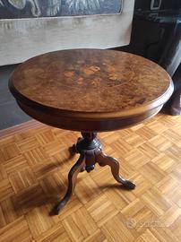 tavolino basso in legno tondo con disegno floreale
