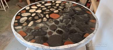 Il tavolino è realizzato a mano, con pietre di fiume naturali incastonate in resina epossidica.