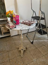 Tavolino in marmo di 65 cm di diametro con aupporto e stelo in ghisa