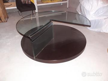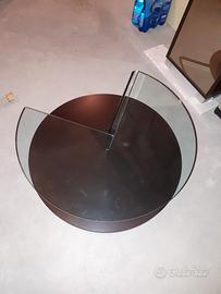 Tavolino tondo da salotto praticamente nuovo in wenge e vetro con ruote
