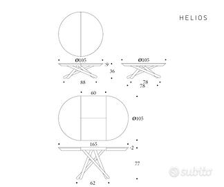 HELIOS é un tavolo dal piano circolare, estremamente versatile nelle funzioni e nell’estetica. Il meccanismo è opportunamente studiato per trasformarsi da seducente tavolino da salotto a tavolo da pranzo allungandosi con estremo comfort per abitanti e ospiti. La struttura sottostante in metallo si incrocia in un piacevole e suggestivo gioco di linee.