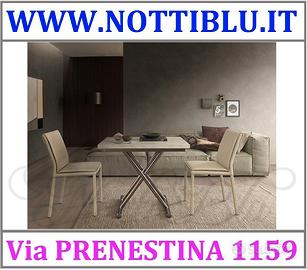 Tavolini Trasformabili a Roma _ Via PRENESTINA 1159 a 300 metri dal G.R.A. Tavolino Trasformabile mod. Gingillo 100% made in Italy Tavolino Trasformabile sali/scendi allungabile Il tavolino Gingillo è un semplice e pratico tavolo da salotto con apertura a libro. Un tavolino di piccole dimensioni quando è chiuso che si trasforma in un tavolo da pranzo di dimensioni 186 x 68 cm con otto comodi posti a sedere quando viene aperto. Ha un sistema di sollevamento servoassistito da pistoni a gas regolabile in altezza al millimetro. Il tavolino Gingillo ha un design semplice e una estrema facilità di utilizzo: in sole due mosse raddoppia la sua lunghezza. Esso rappresenta l’essenzialità di un complemento d’arredo in grado di trasformassi con un piccolo gesto in un comodo e pratico tavolo pranzo. Per saperne di più recarti con fiducia presso il punto vendita di letti a scomparsa e Tavolini Trasformabili a Roma in Via Prenestina 1159 e non dimenticarti di chiedere delle promozioni del momento. Puoi pagare a rate da 6 mesi fino a 72 mesi Tavolini Trasformabili a Roma > Proposta Salvaspazio by Notti Blu di Conti Mario