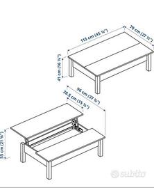 Perfetto sia come tavolino da salotto che come piccolo tavolo da lavoro/pranzo grazie al meccanismo che solleva e avvicina il piano.