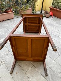 Tavolino trespolo rialzato a due ripiani, in legno da osteria anni ‘50. Utilizzato per anni come porta tv.